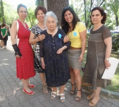 Üç Kuşak da Üsküdar Amerikan Lisesi’nden3.07.20122012 Yılı Reunion`da 70. mezuniyet yılını kutlayan 1942 mezunumuz Nevriye Ahıskalı Alptekin`e yine kendi gibi UAA mezunları olan 3 kızı ve torunu eşlik ettiler.